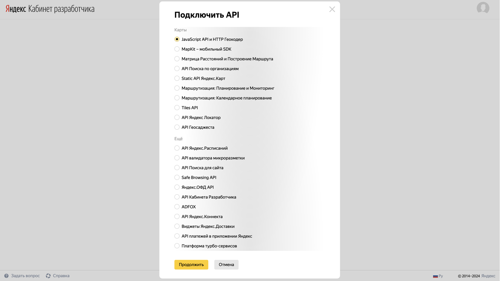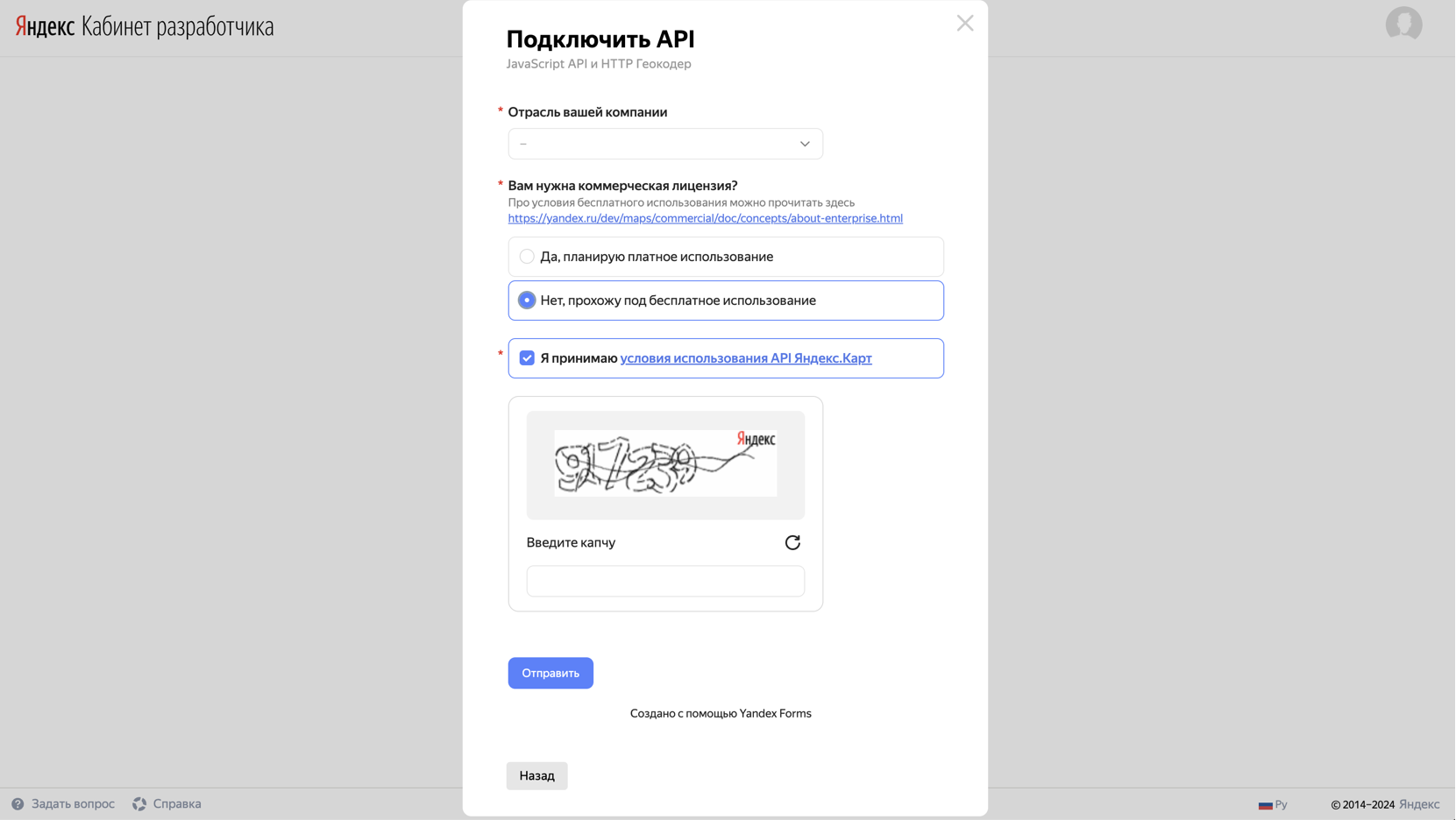 Получение API ключа Яндекс Карт
