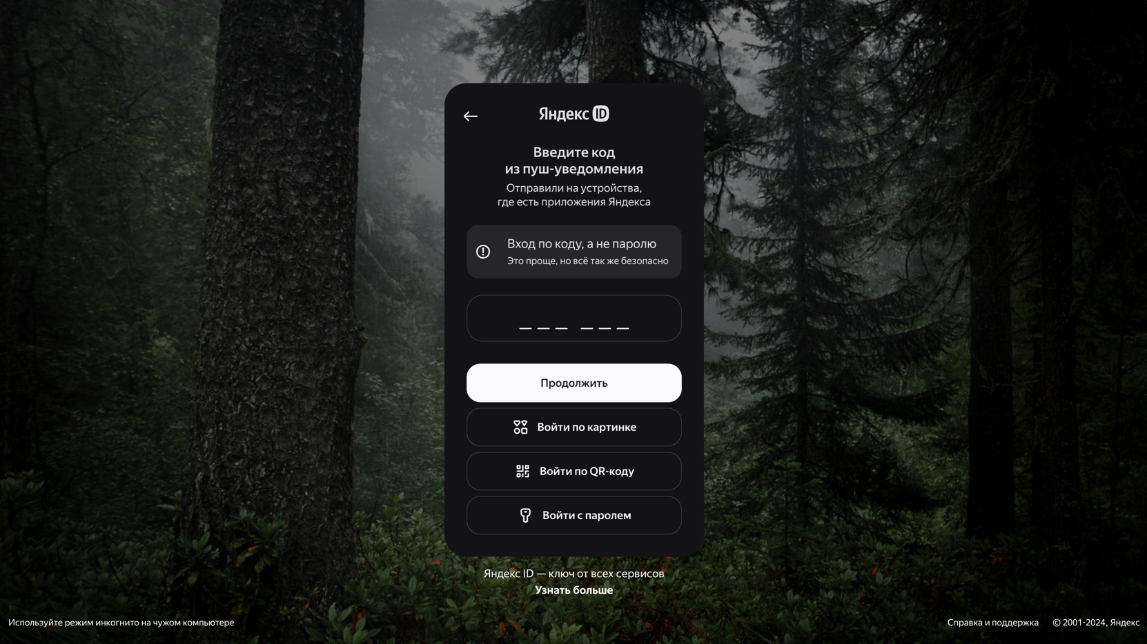 2️⃣ Подтвердите вход кодом присланным на ваш телефон (на телефоне должна быть активирована тем или иным образом учётная запись Яндекс, например почта)